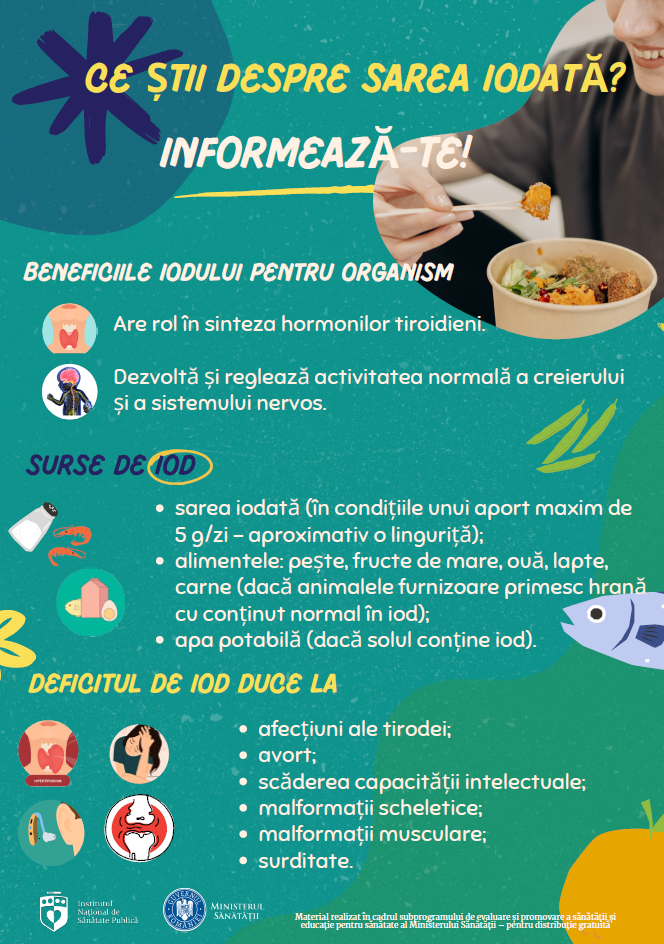 Cu sloganul „Ce știi despre sarea iodată? Informează-te!” autoritățile medicale încurajează consumatorii să verifice eticheta sării cumpărate, să se asigure că aceasta este sare iodată, conform legislației în vigoare și să nu depășească limitele recomandate pentru consumul zilnic.