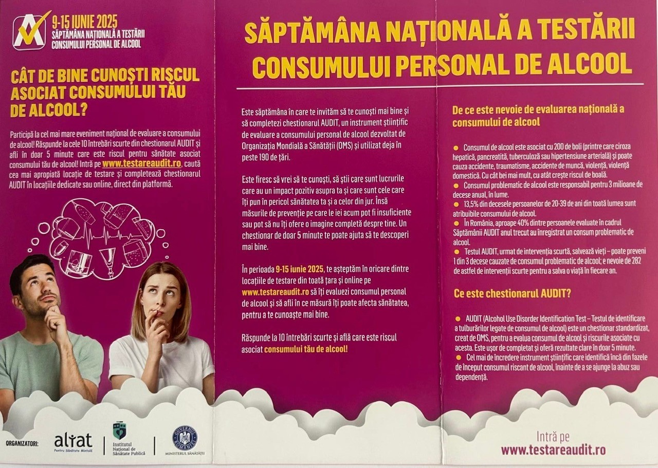 Cu această ocazie, Direcția de Sănătate Publică a județului Brașov este parte din cea mai mare campanie de evaluare a consumului de alcool în rândul românilor – Săptămâna AUDIT, eveniment național realizat de Asociația Aliat pentru Sănătate Mintală.