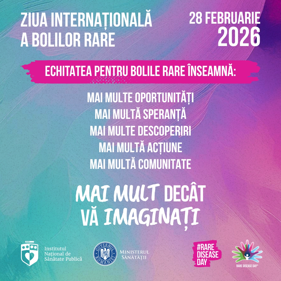 Ziua Internațională a Bolilor Rare 2026 reprezintă un moment de schimbare de perspectivă, de la boală la persoană, de la etichetare la înțelegere și de la marginalizare la participare activă în societate. În acest spirit, responsabilitatea de a îmbunătăți viața persoanelor cu boli rare este una colectivă, de aceea transmitem un apel către autorități, profesioniști din domeniul sănătății și din mediul academic, către mass-media și societatea civilă să colaboreze la construirea unui sistem mai accesibil și mai echitabil, la combaterea stigmatizării, promovarea incluziunii și a unei vieți independente, demne pentru toate persoanele afectate. Fiecare voce contează.