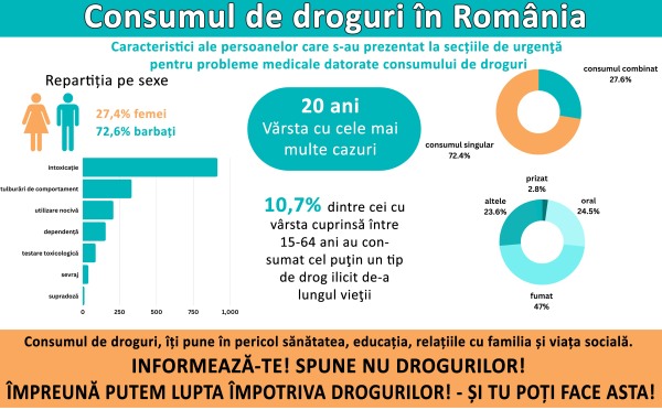 În România, conform raportului elaborat de Agenția Națională Antidrog (ANA) în anul 2021, la nivel național, 2484 de persoane au beneficiat de servicii medicale de urgență în urma consumului de substanțe psihoactive, aproximativ jumătate dintre solicitări fiind înregistrate pe fondul consumului de droguri ilicite și s-au înregistrat 25 de decese direct asociate consumului de droguri.