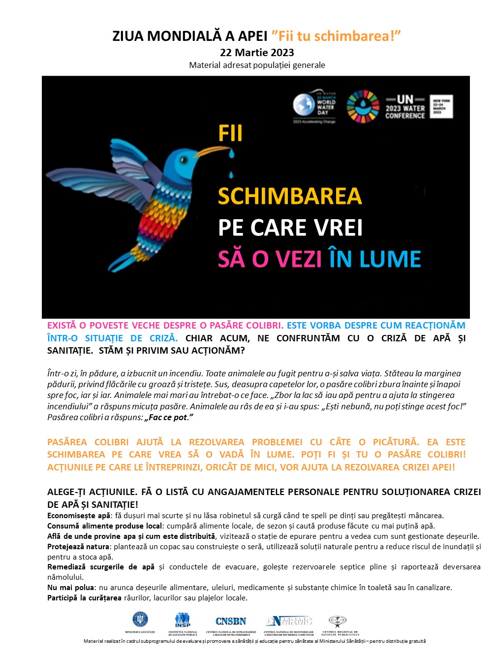 ZIUA MONDIALĂ A APEI22 MARTIE 2023Fii tu schimbarea!