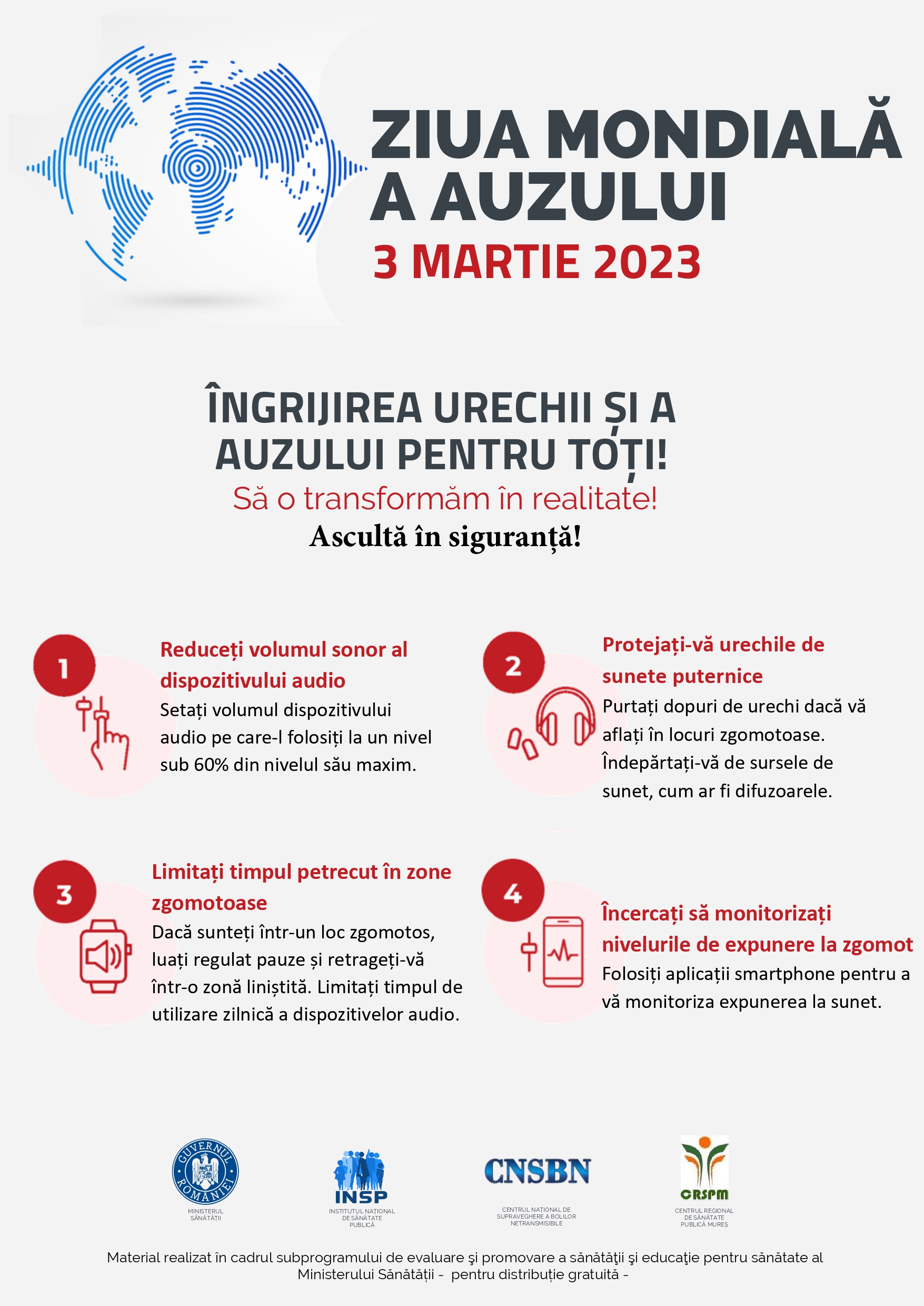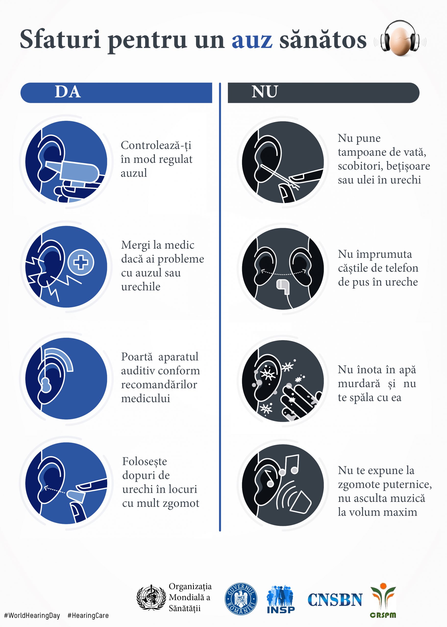 - informarea persoanelor despre importanța îngrijirii urechii și a auzului și încurajarea lor de a accesa serviciile medicale specializate în acest domeniu.