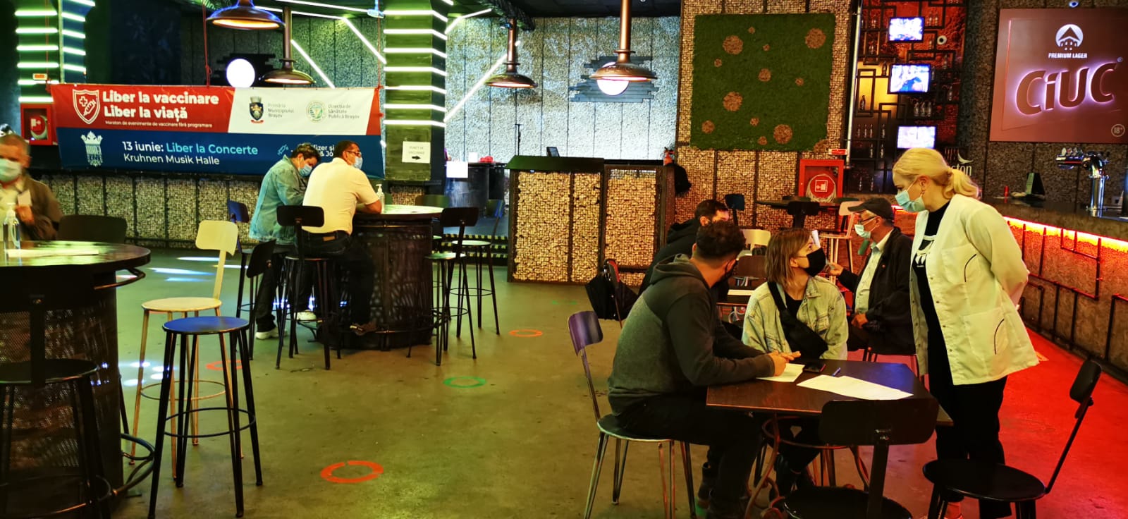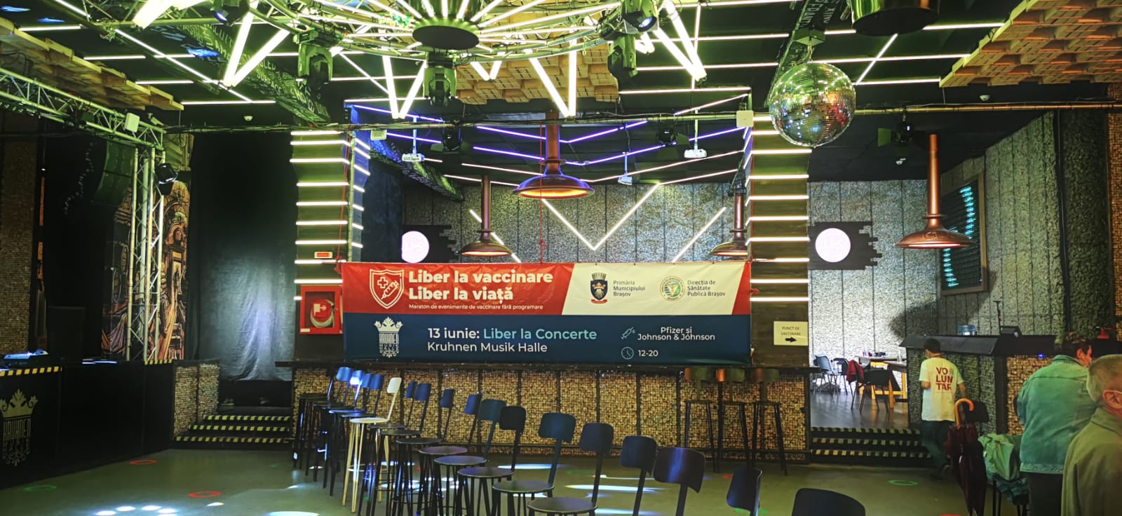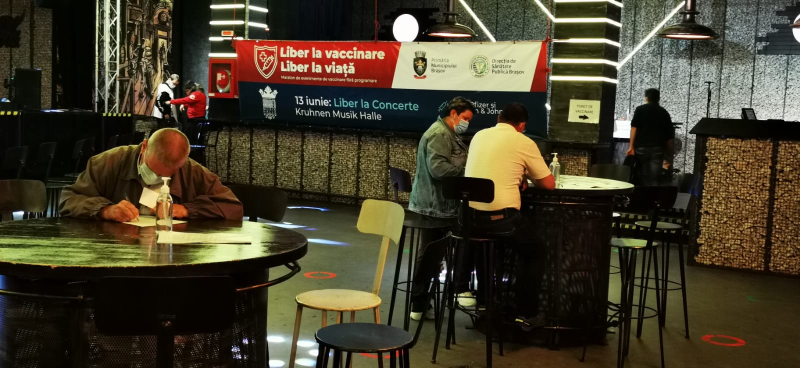 De această dată, cei cărora le lipsesc concertele și ar vrea să se întoarcă în atmosfera unui live – fie ei artiști sau spectatori – se vor putea vaccina cu serurile Pfizer și Johnson&Johnson, într-unul dintre cele mai populare locuri de concert din Brașov: Kruhnen Musik Halle (Nicolae Titulescu, nr. 2). Program: 12:00-20:00