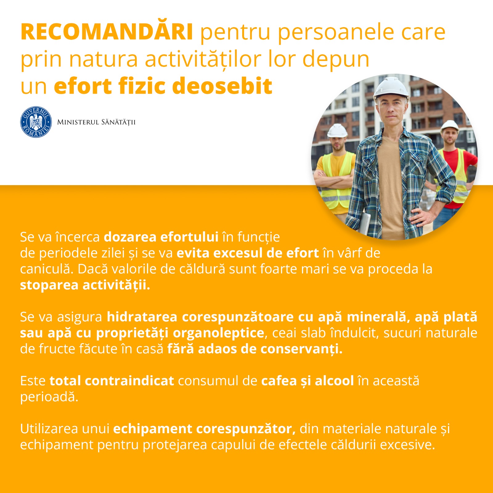 - Recomandări pentru persoanele care prin natura activităților lor depun un efort fizic deosebit