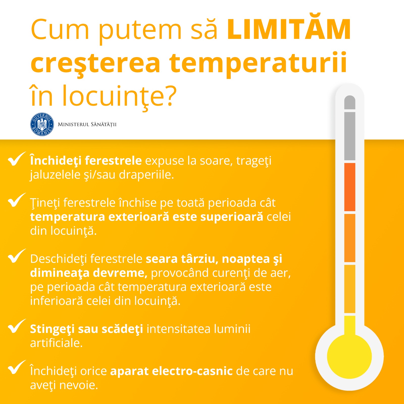 - Țineți ferestrele închise pe toată perioada cât temperatura exterioară este superioară celei din locuință.