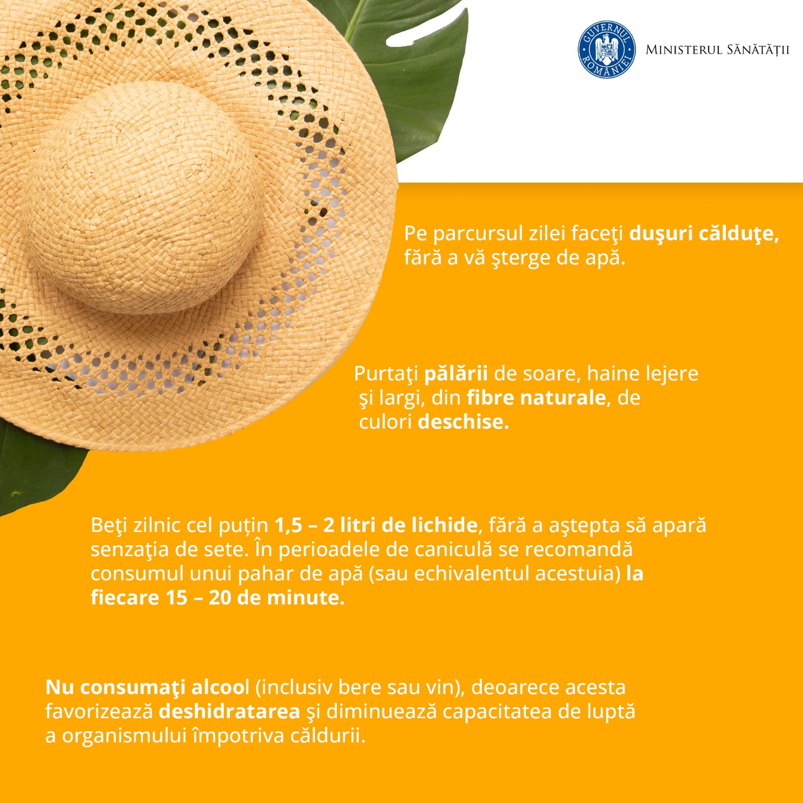 e) se recomandă evitarea consumului de alcool și cafea în timpul caniculei