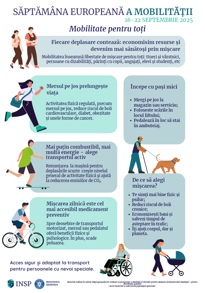 Săptămâna Europeană a Mobilității 2025 promovează beneficiile pentru sănătate ale călătoriilor active. Călătoriile active: o rețetă pentru o sănătate mai bună.